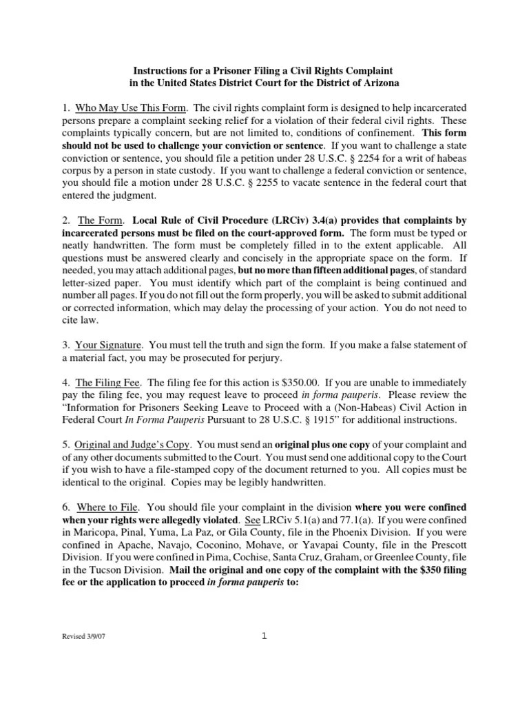 And a check or money order for $402, or an. Web to file a § 1983 action, you must submit: Web fill out 1983 civil rights complaint form in just a couple of clicks by using the guidelines listed below: Web the attached civil rights complaint form is designed to help you prepare a complaint seeking relief for alleged violations.