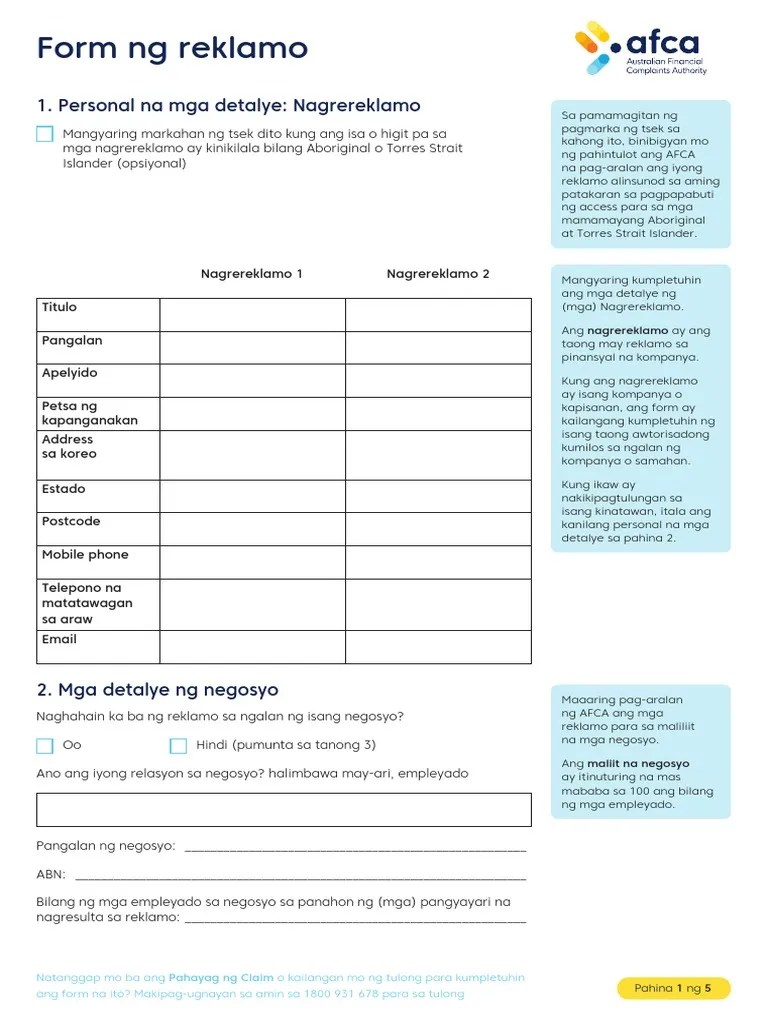 Web read through the process we follow, including afca's timelines, and make sure you understand the process for your complaint. Complainant please tick here if one or more of the complainants identifies as being of aboriginal or torres strait islander origin. Web online complaint form 1 financial firm 2 type of service 3 main complaint 4 outcome sought 5 complainant.