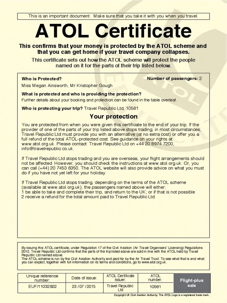 Web if you are abroad and have been affected by an atol failure, you can call us on +44 (0) 333 103 6350, which is available 24/7. 10 jan 2023 it’s always important to ensure your holiday is atol protected. Get your online template and fill it in using progressive features. Web the air travel organisers’ license (atol) is a financial protection scheme created by the civil aviation authority (caa) in 1973 as a.