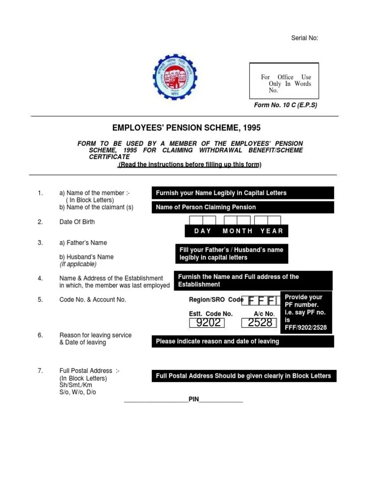 Guidelines Form 10 c for Pension Withdrawal Cheque Financial Services