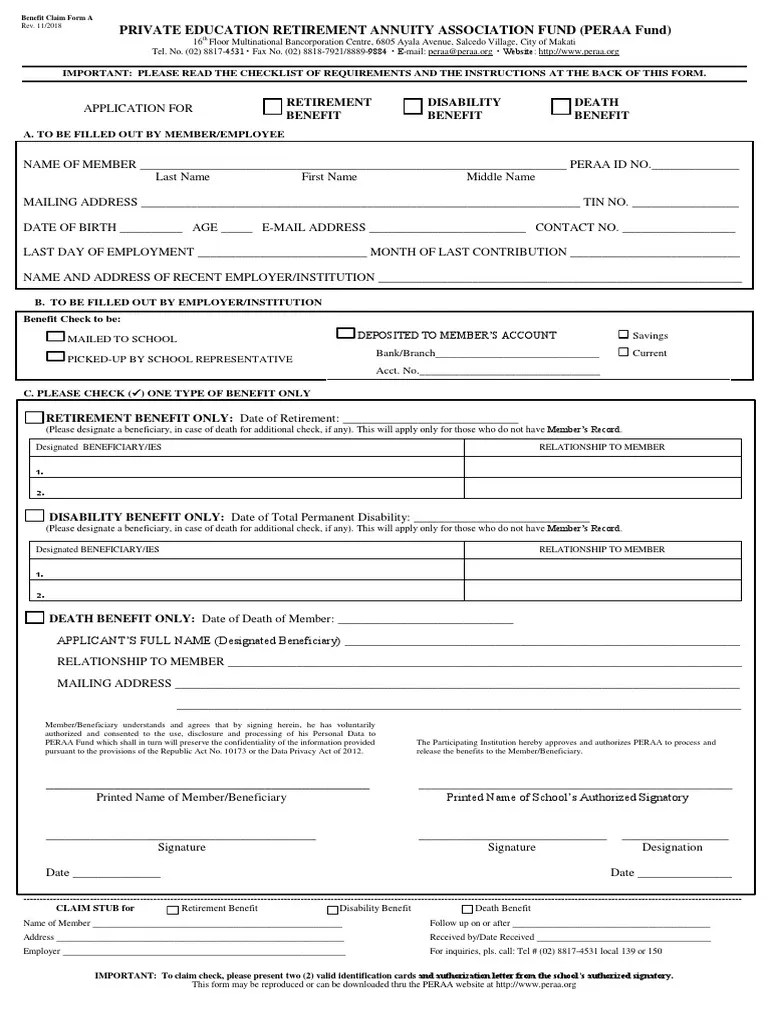 Benefit Claim Form A Identity Document Retirement