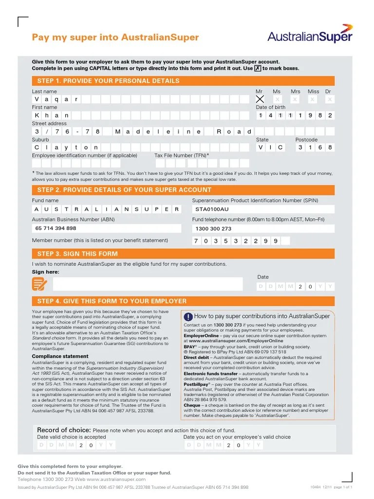 Choose Australian Super Nomination Form Payments Government Finances