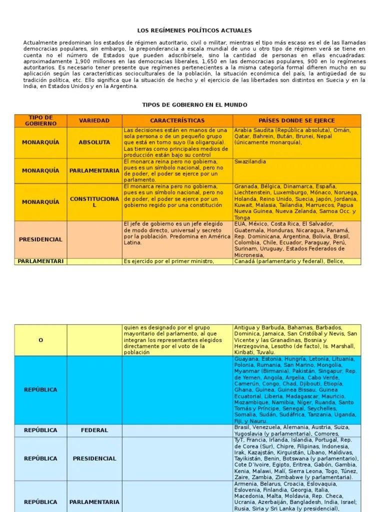Tipos de Gobiernos Listado completo con características Geopolítico.es
