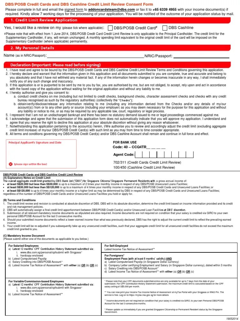 DBS Credit Limit Review Consent Form(P.E.T) Credit Card Cheque