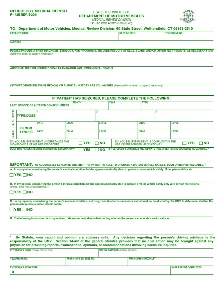 DMV Neurology Medical Report Department Of Motor Vehicles Physician