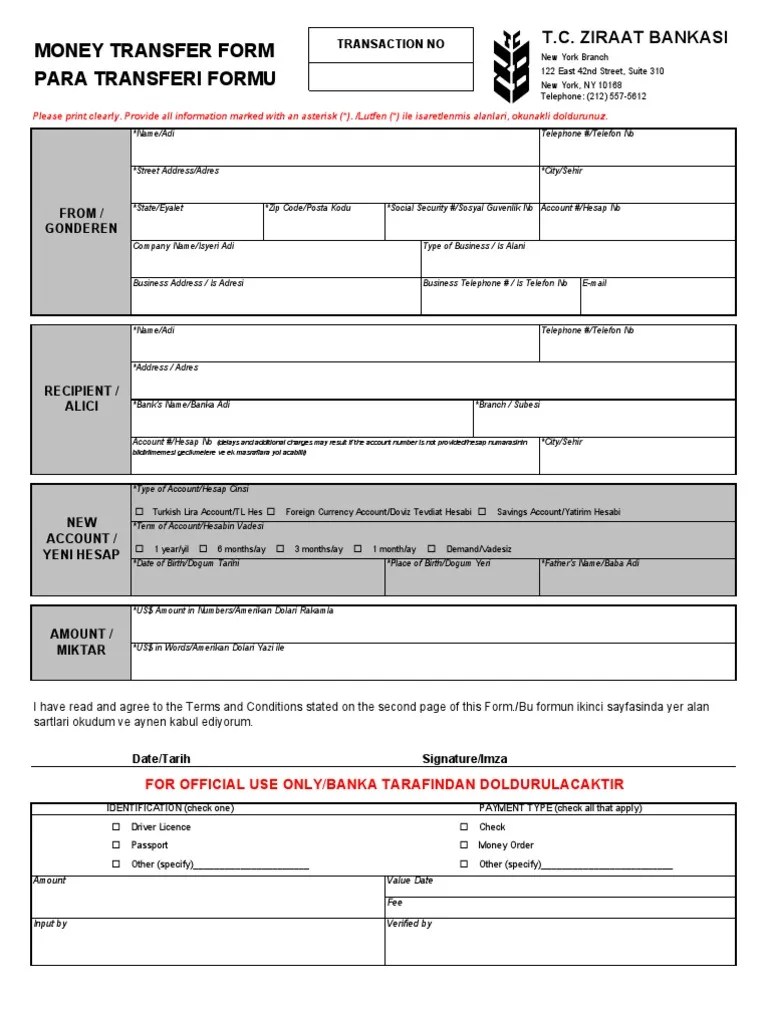 Money Transfer Form New PDF Cheque Financial Transaction