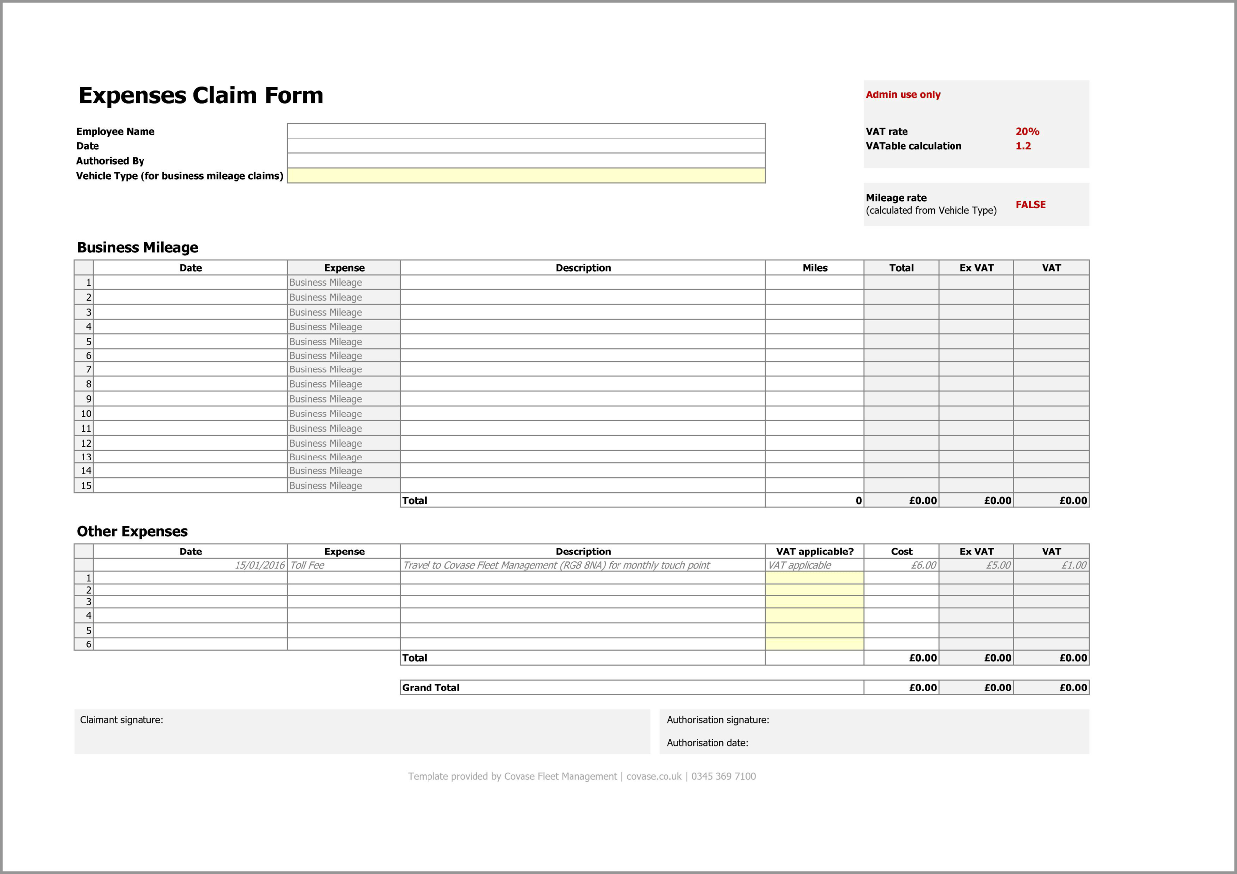 Expenses Form UK Free Excel Template Download — Covase Fleet