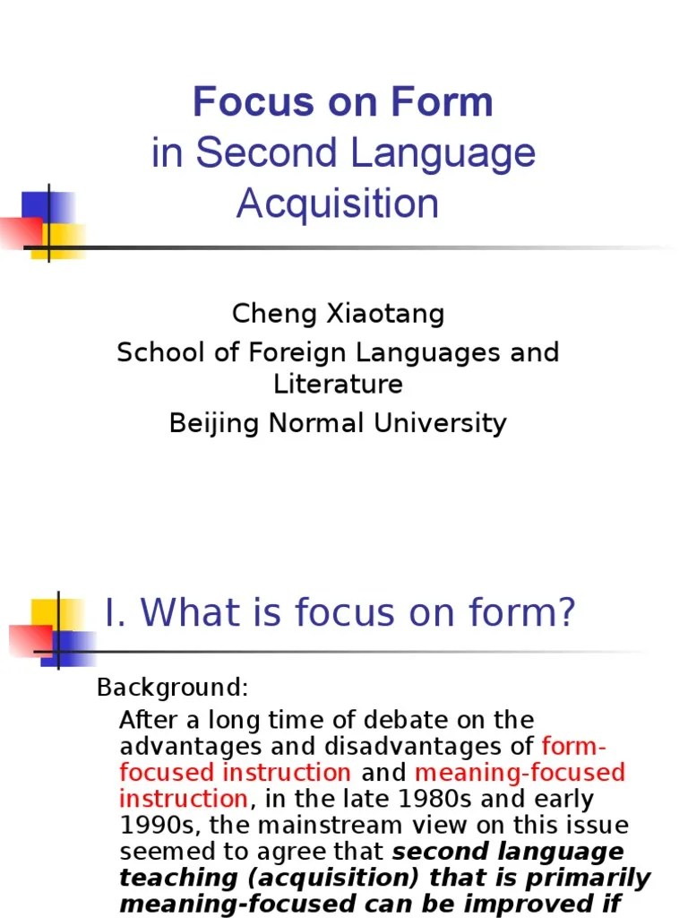 PPT Focus on Form in Second Language Acquisition PowerPoint