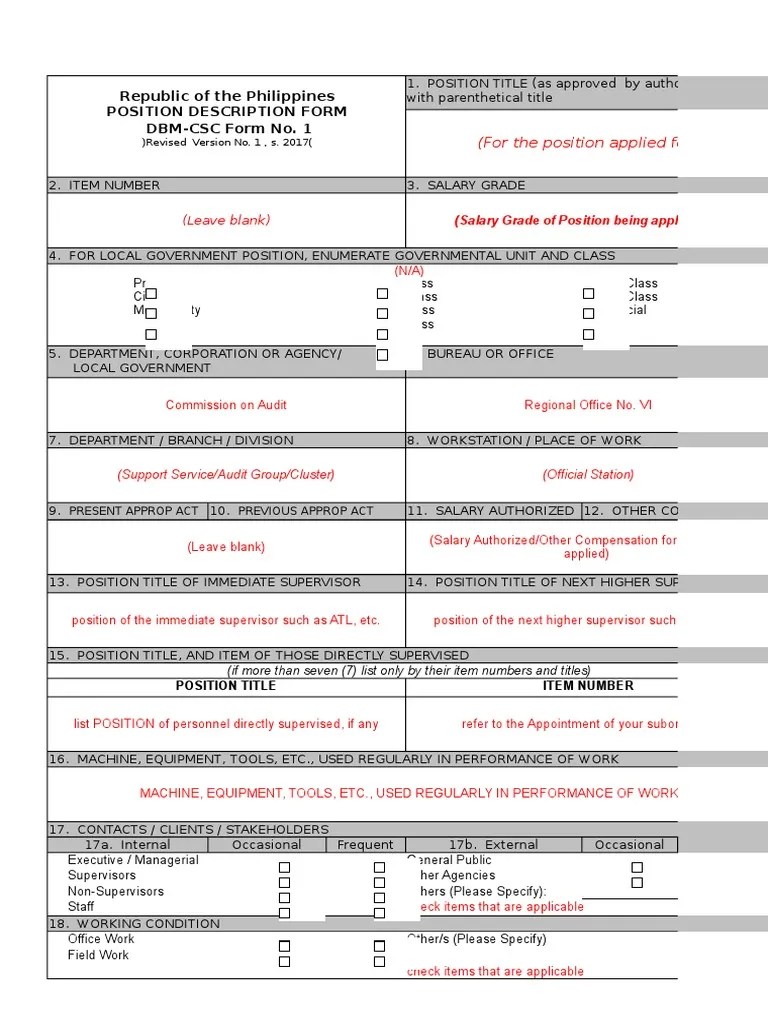 360622386 DBM CSC Form No 1 Position Description Forms Revised 2017