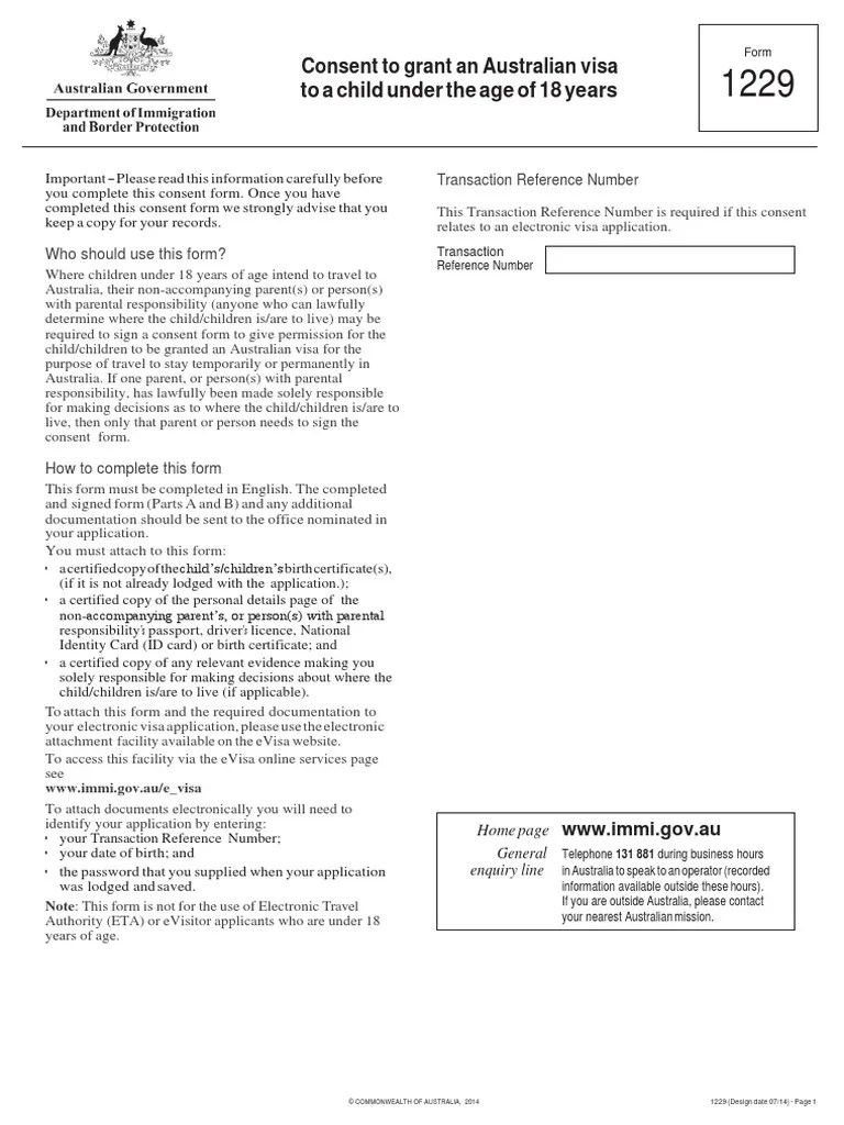 Form 1229 Consent - On average this form takes 16 minutes to complete. Web how to protect your form 1229 consent when filling out it online? Web be in the form of either a completed form 1229 consent to grant an australian visa to a child under the age of 18 years or a statutory declaration. To a child under the age of 18 years. Web 12k views 7 months ago. Web i need some advise or opinion regarding form 1229, consent to grant an australian visa to a child under the age of. Web use our online pdf forms to make a visa application for a visa. Web parental responsibility documents such as form 1229 consent form to grant an australian visa to child under the age of 18. Web all forms are printable and downloadable. Compliance with esignature regulations is only a portion of.