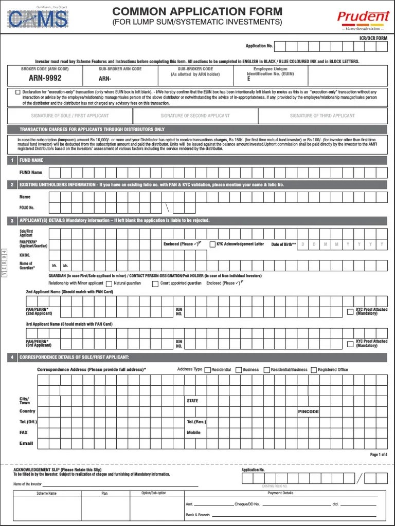 CAMS Common Application Form Cheque Business