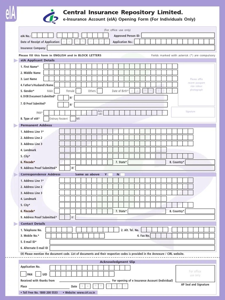 EInsurance Account (eIA) Opening Form PDF Identity Document