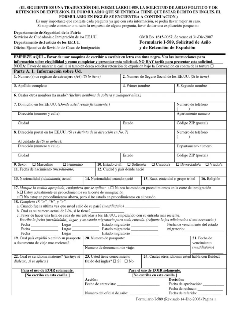 Form I589 Spanish Translation.pdf Pasaporte Visa de viaje Prueba