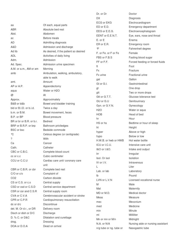 Common Medical Abbreviations and Dosage Conversions Medical assistant