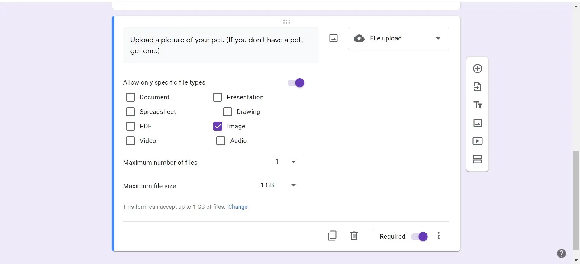 In your google form, select the panel that includes the question you want to add a file to. Due to its limited storage,. Web you can upload a file on google forms, allowing you to add an image or video to supplement your questions. You can either add them in your form as part of your. Open the google form.