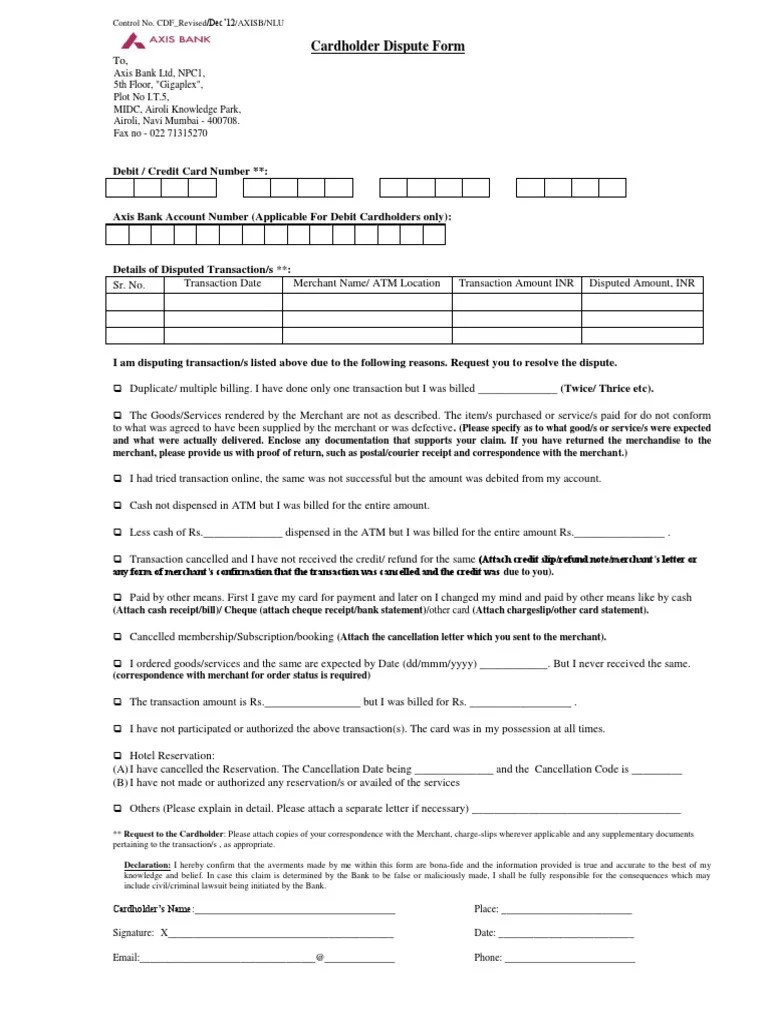 Axis Bank Dispute Form Fill Out and Sign Printable PDF Template signNow