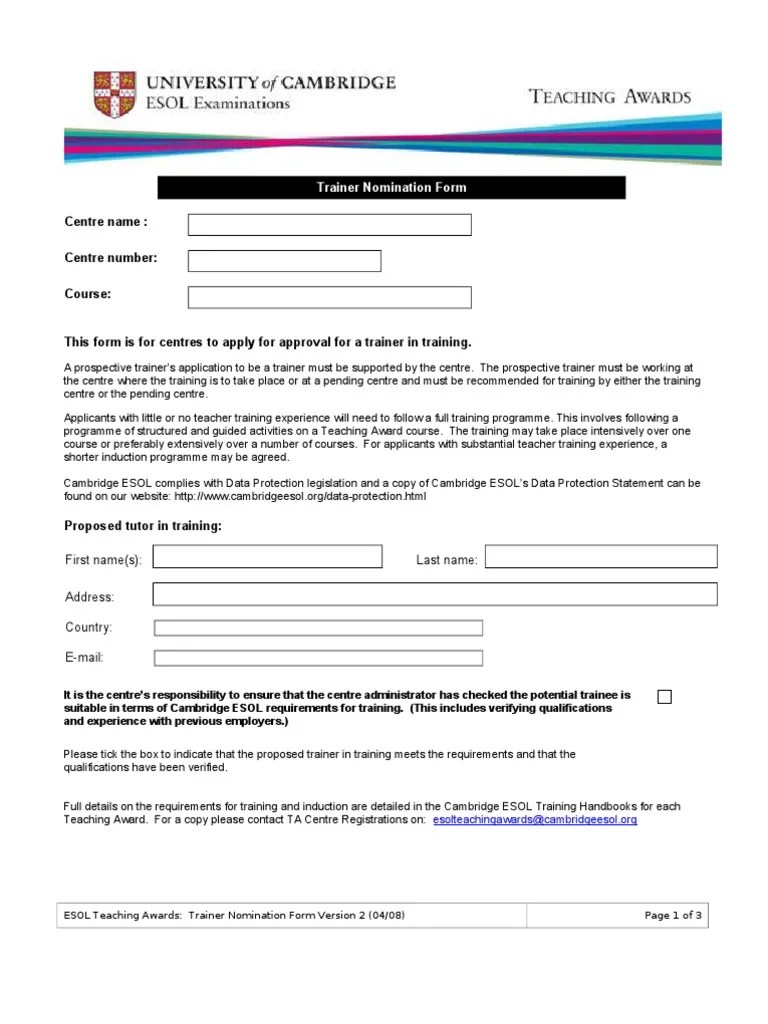 112823 Trainer Nomination Form Version Three English As A Second Or