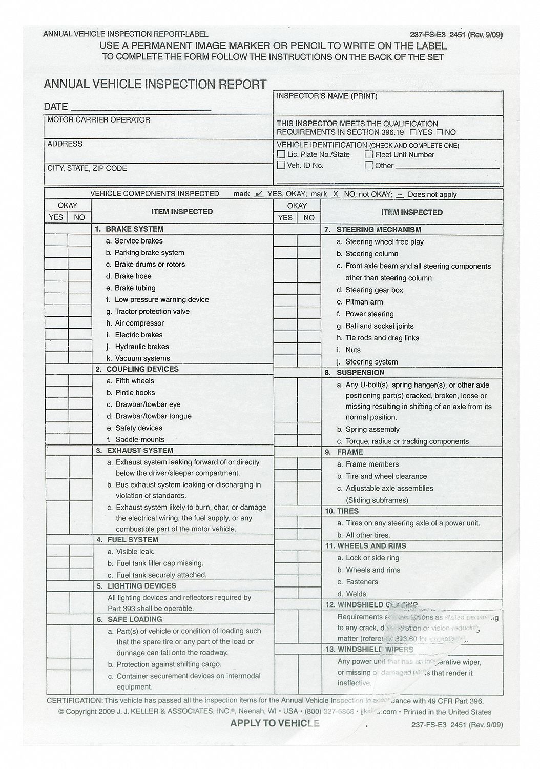 Keller offers you a wide range of affordable safety and compliance forms. I, _____residing at_____ (address) hereby affirm that i am the. Web new on our site. Web get the annual vehicle inspection report (avir) forms you need to comply with dot requirements. Web get vehicle inspection and truck maintenance forms and resources—including driver vehicle inspection report (dvir), annual vehicle.