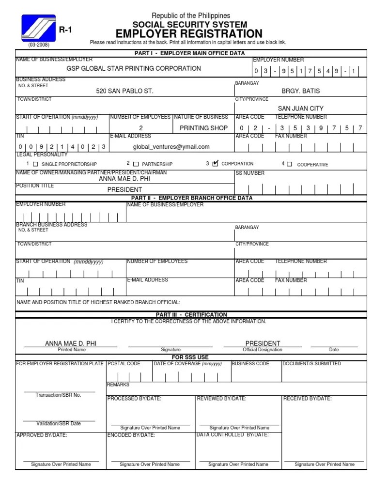 SssR1.employer Registration Form PDF PDF Government Information