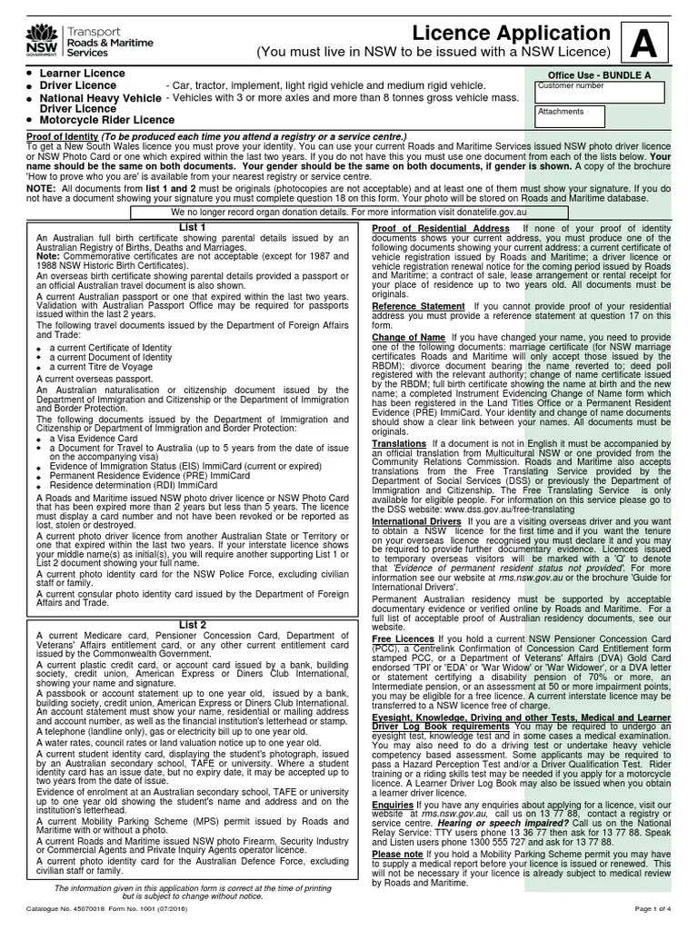 Driving Licence Application Form New South Wales Free Download