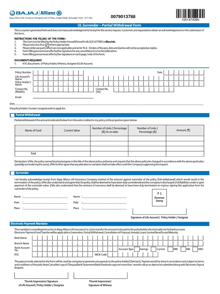 Bajaj Allianz Surrender Form Life Insurance Signature