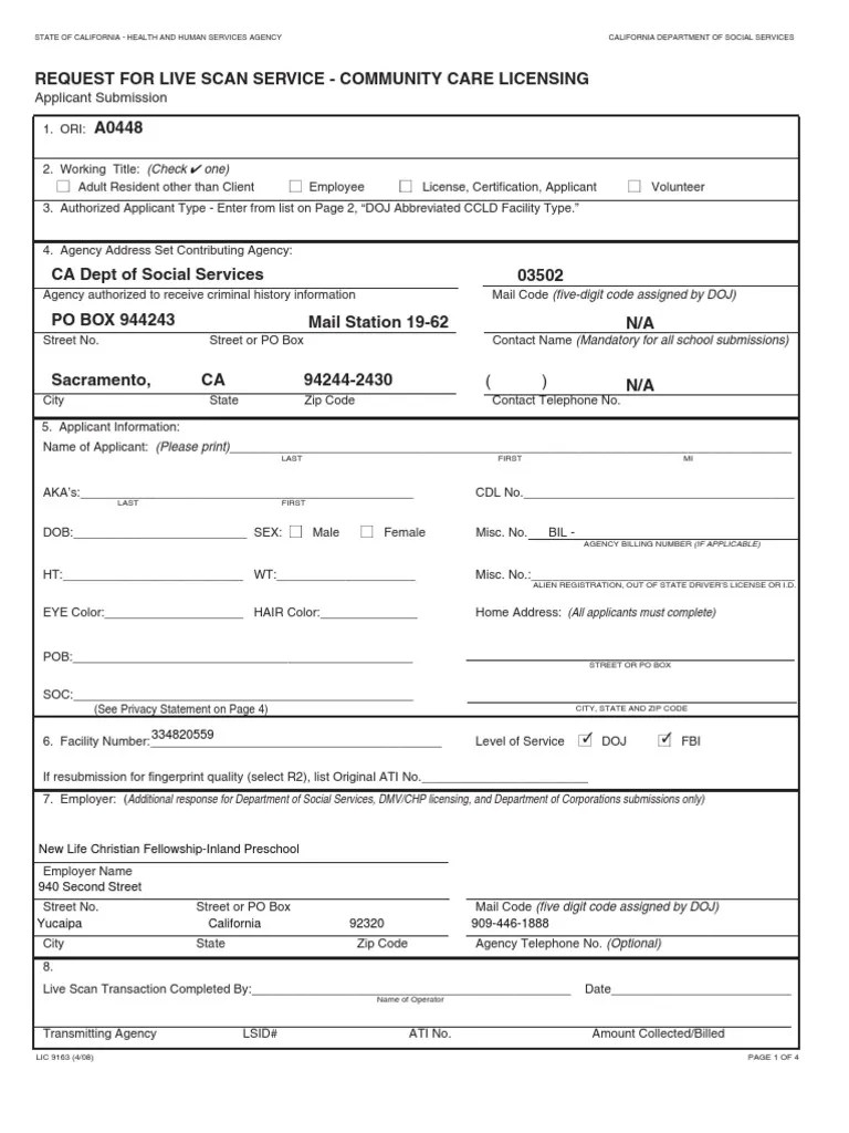 Fillable Online cdss ca REQUEST FOR LIVE SCAN SERVICE COMMUNITY CARE