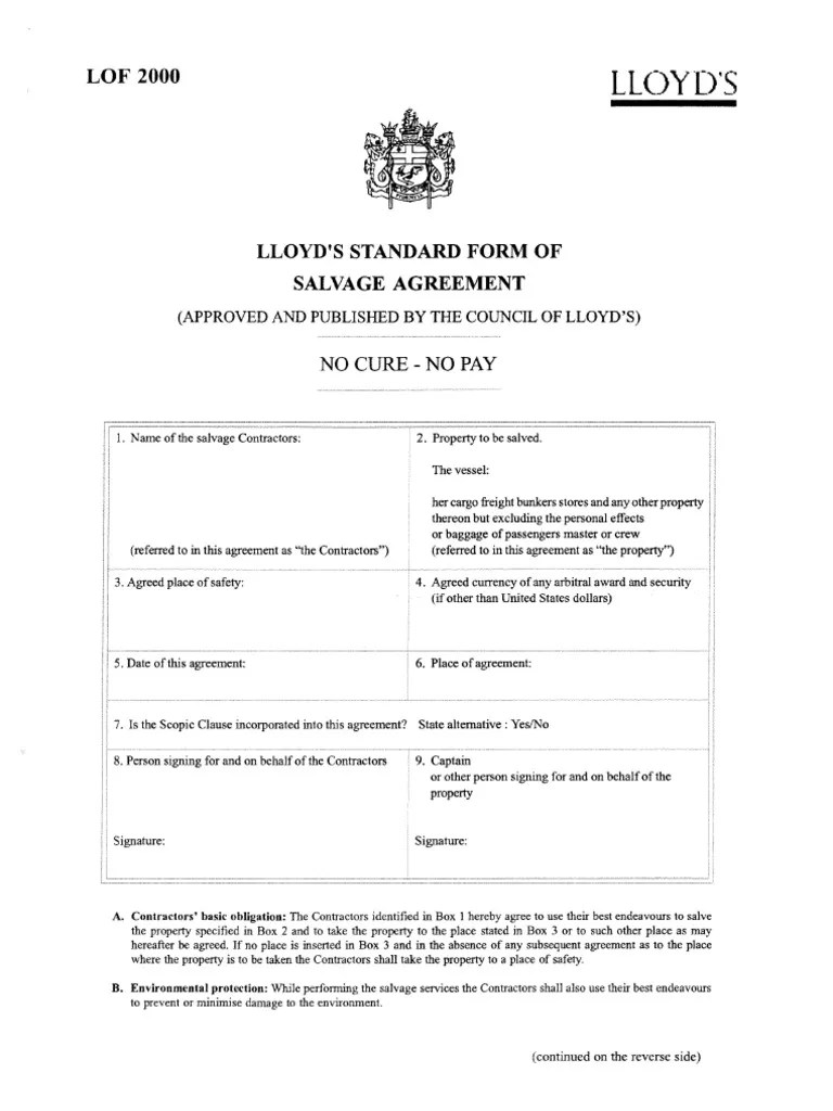Web Lloyd's Open Form (Lof) Lloyd's Standard Form Of Salvage Agreement Awards.