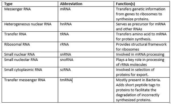 What are the types of RNA in a cell? What are their functions? Quora