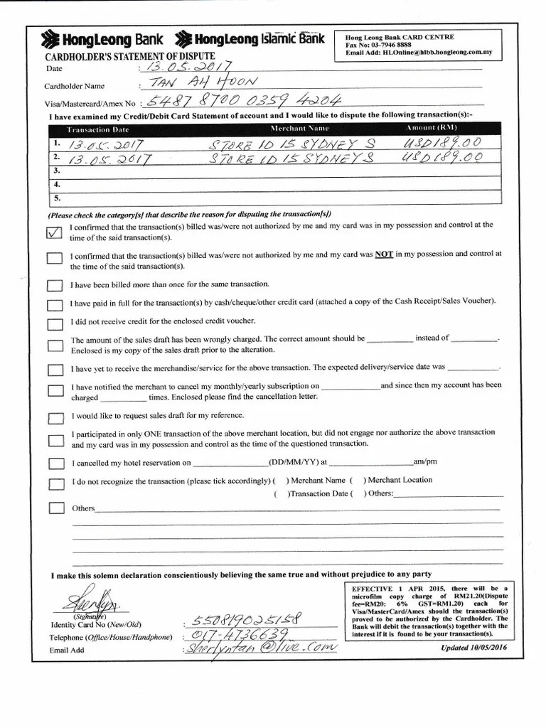 HL Dispute Form.pdf Cheque Money