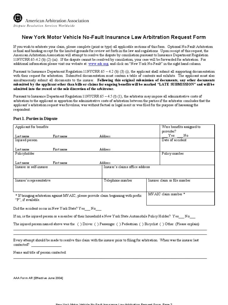 Nys Form Nf2 Application For Motor Vehicle NoFault Benefits