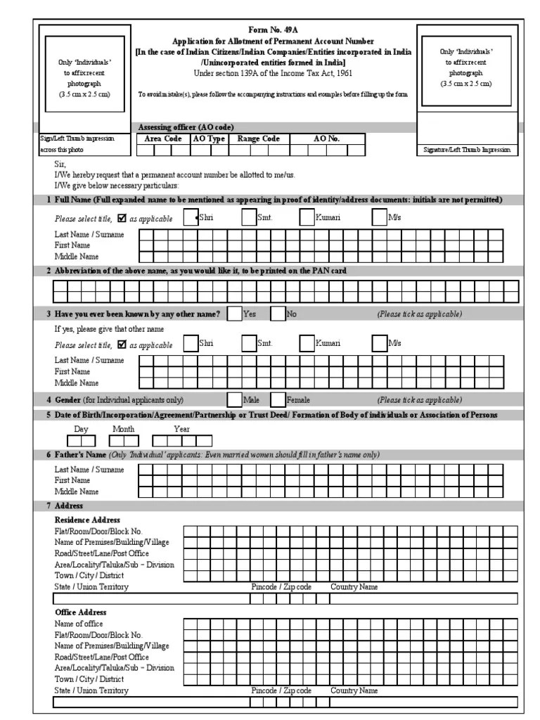 [PDF] PAN Card Form PDF, PAN Card Application Form 49A PDF Download in