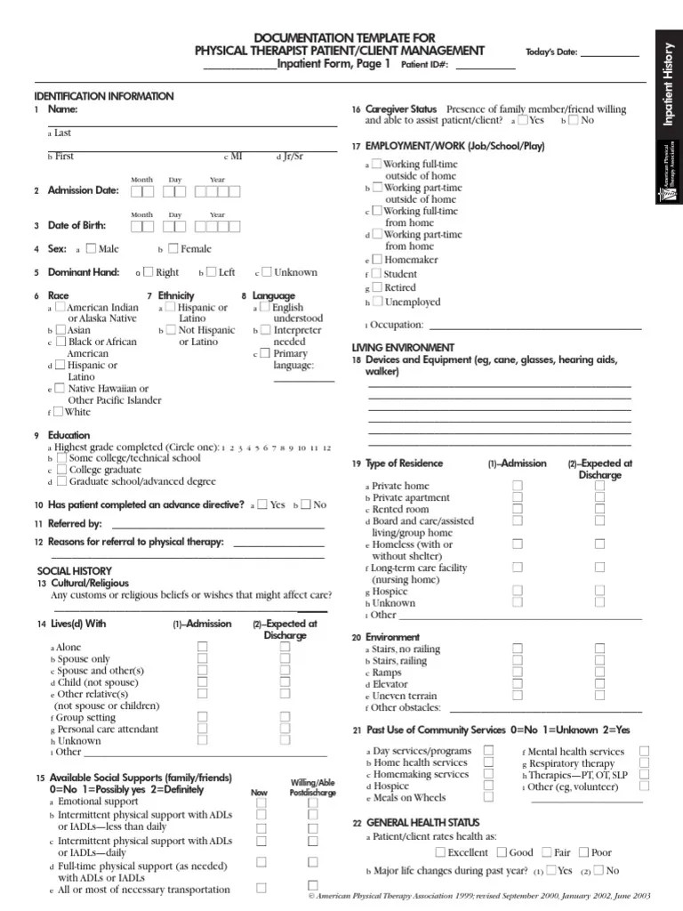 DOCUMENTATION TEMPLATE for Physical Therapy Inpatient Form Race And