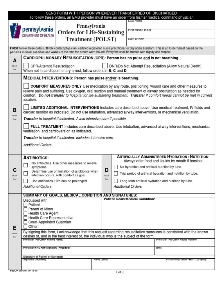 Polst Is A Medical Form Completed By A Doctor, Nurse Practitioner Or Physician Assistant In.
