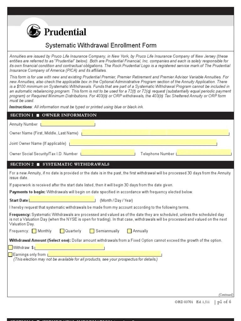 Prudential Systematic Withdrawal Form Withholding Tax Tax In