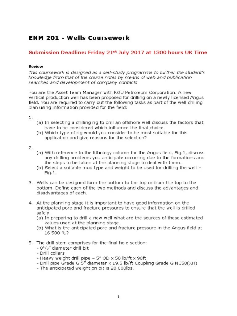 RGU ENM 201 Wells CourseworkMay2017 Final Pipe (Fluid Conveyance
