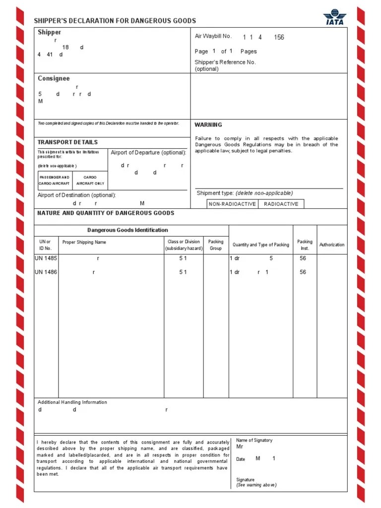 Shipper S Declaration Of Dangerous Goods Fill And Sign Printable Gambaran