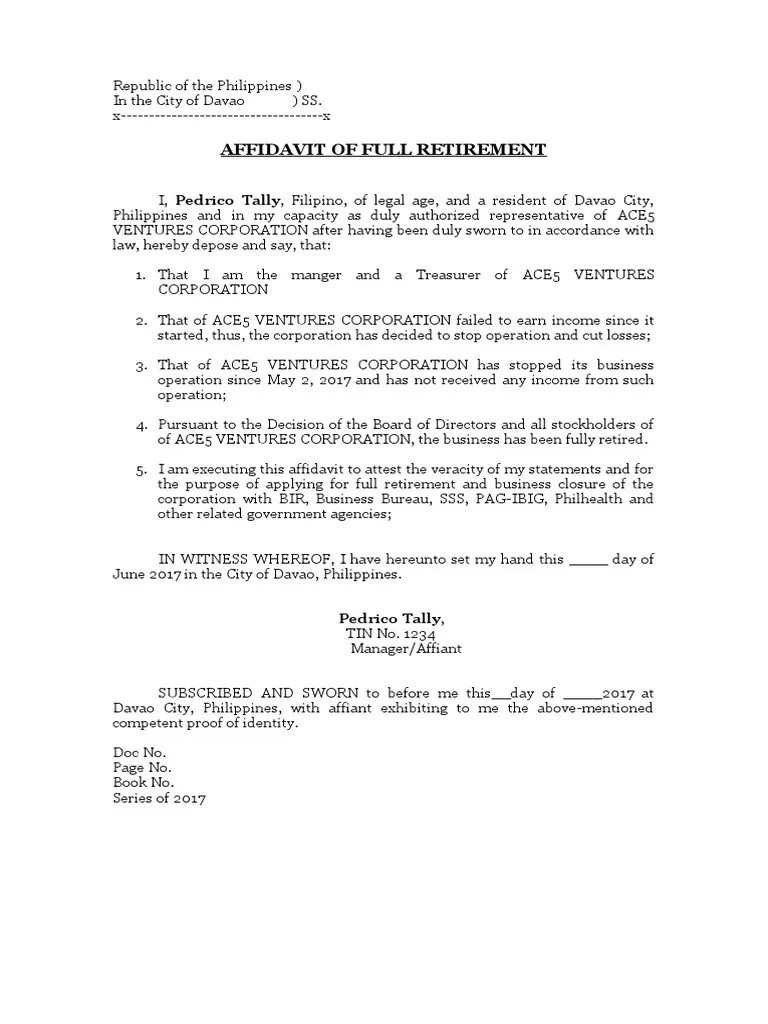 Retirement of Business FormFinal PDF Affidavit Public Law