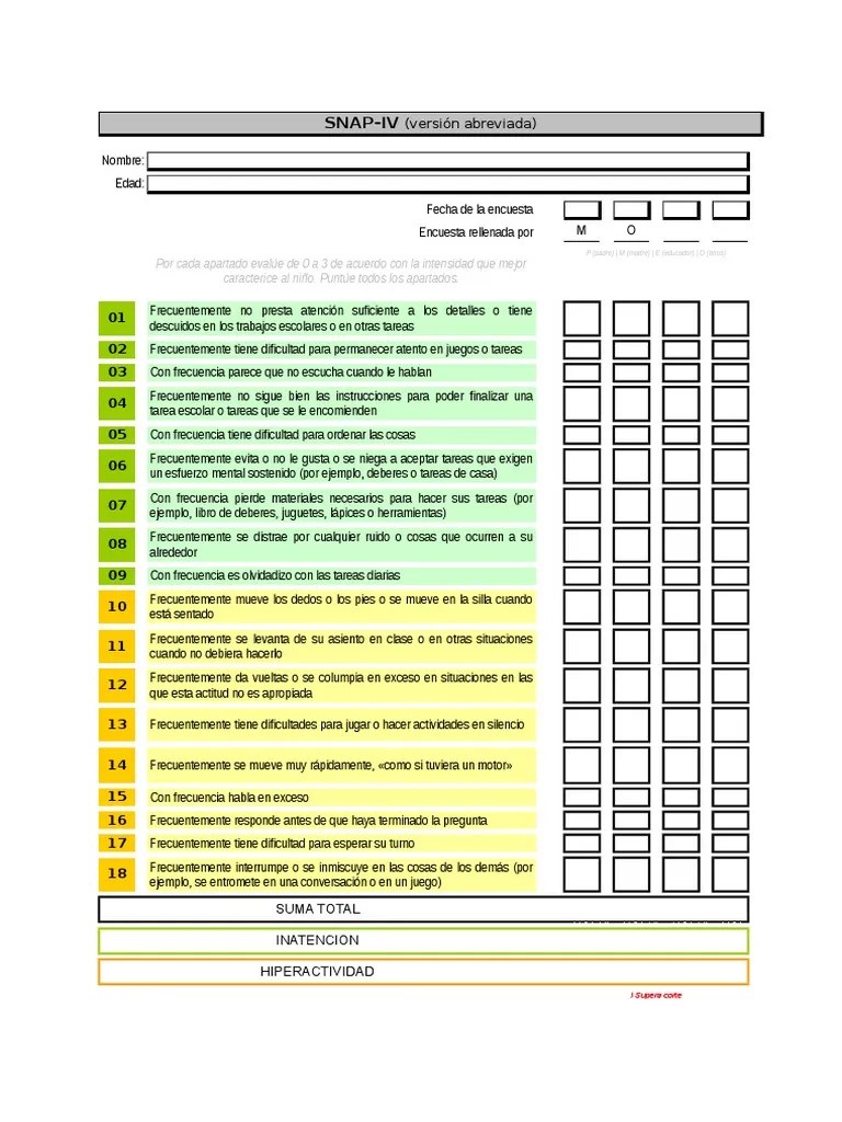 Snap Iv PDF Desorden hiperactivo y deficit de atencion Psiquiatría