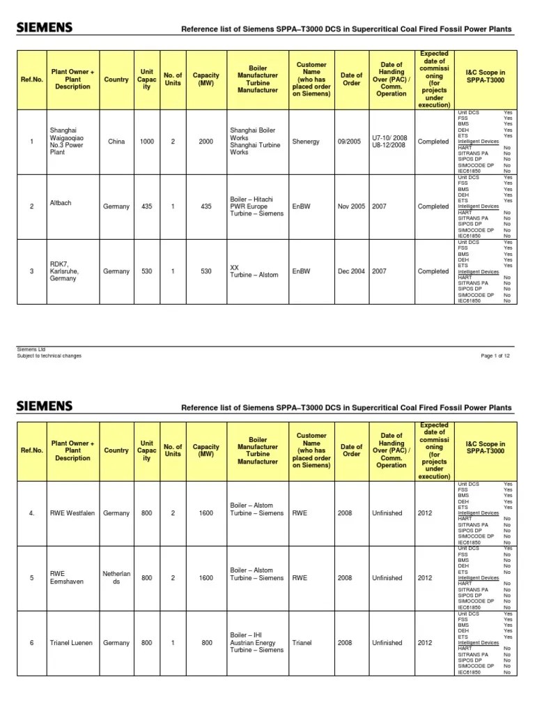 04 2 Reference List SPPAT3000 Super Critical Plants Siemens