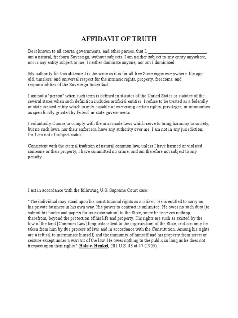 Affidavit Of Truth Template HQ Printable Documents