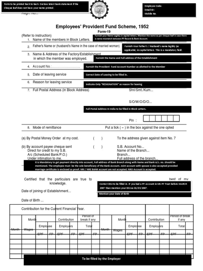 PF Withdrawal Form 19 Sample Cheque Payments Free 30day Trial