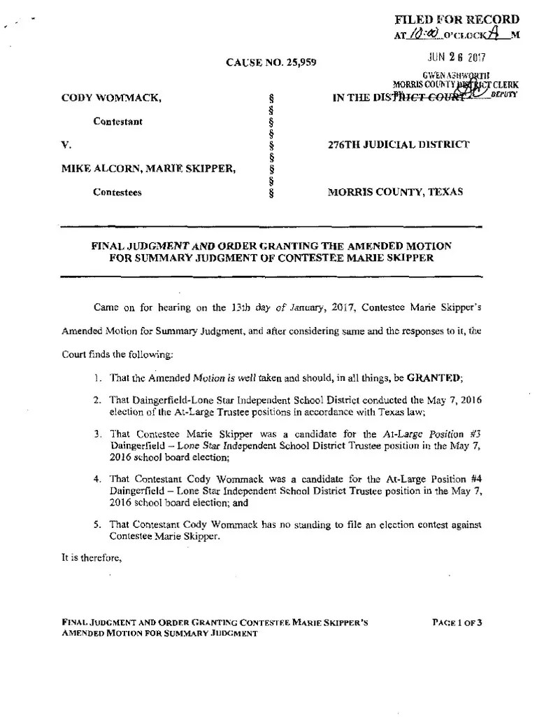 Final Judgement Signed Order Lawsuit Courts