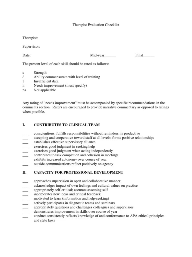Therapist Evaluation Checklist Psychotherapy Medical Diagnosis