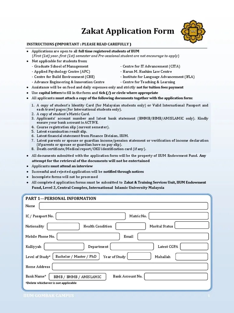 ZAKAT APPLICATION FORM ONLINE 2016